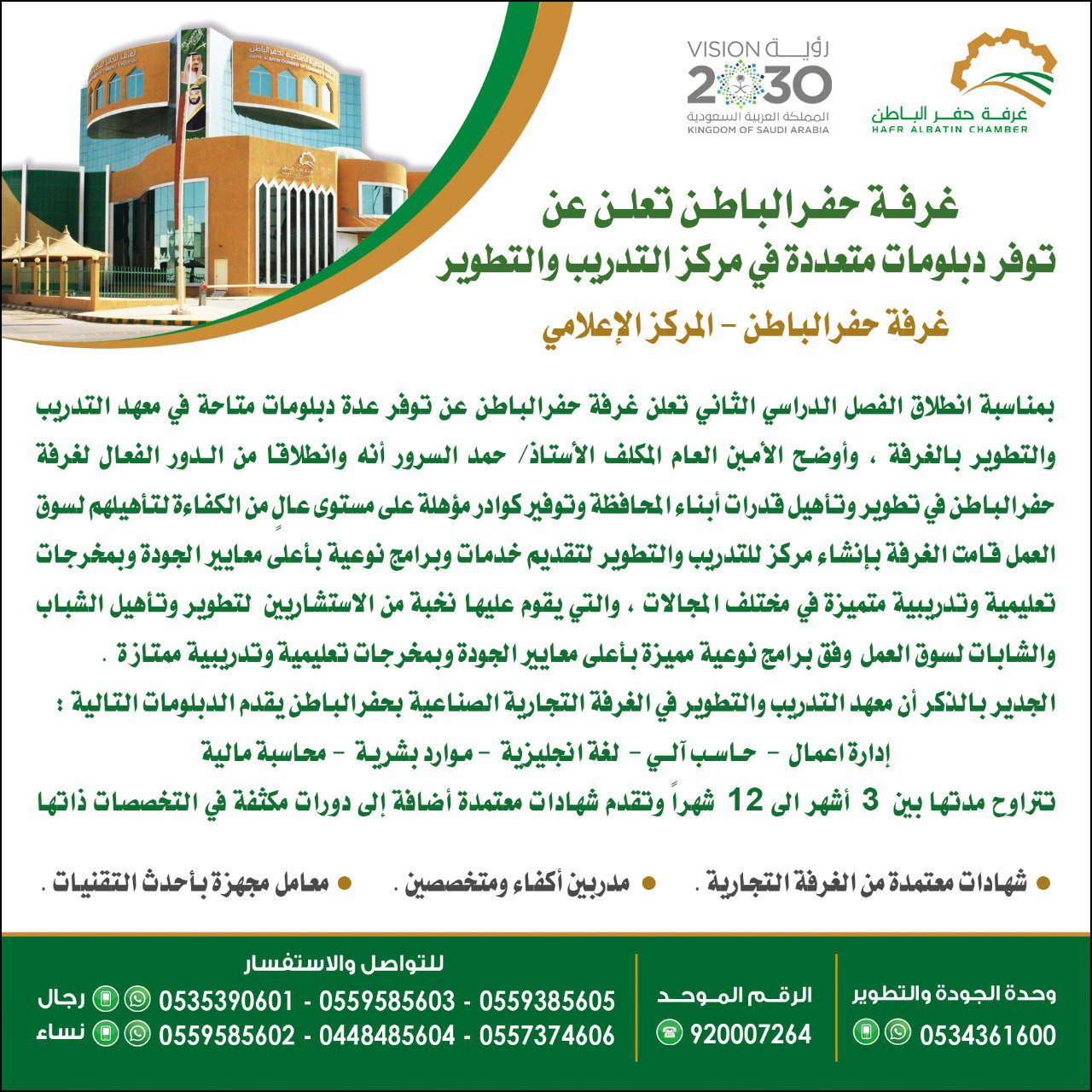 트위터의 غرفة حفرالباطن 님 غرفة حفرالباطن تعلن عن توفر دبلومات متعددة في مركز التدريب والتطوير